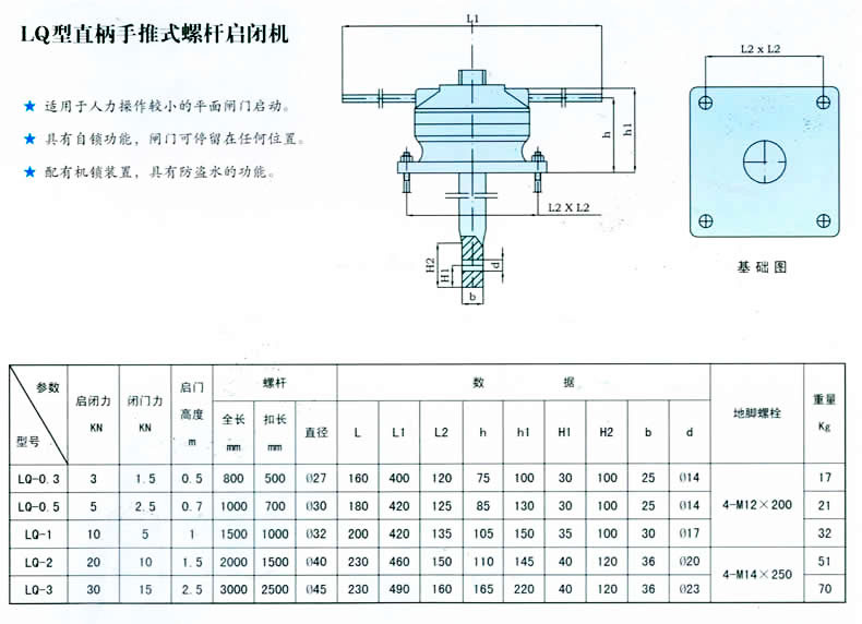 LQ型啟閉機(jī)規(guī)格及參數(shù)