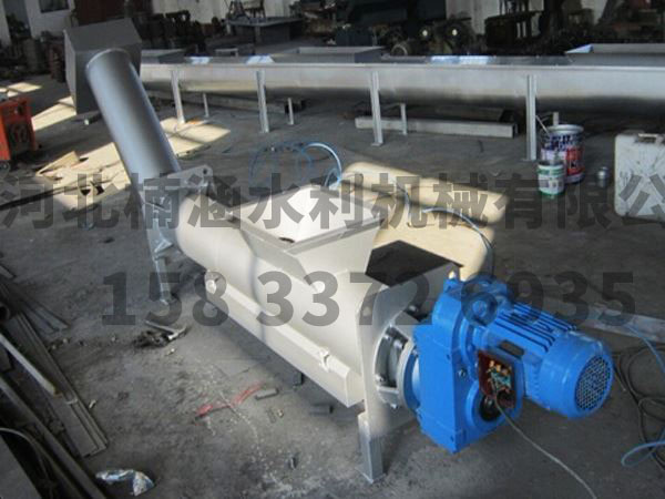無(wú)軸螺旋輸送機(jī)較適合應(yīng)用于污物量不大,污物較細(xì)小,污物含水量較大的場(chǎng)所,如污水處理廠、紡織印染 廠等行業(yè)。 它由螺旋推進(jìn)體、集料倉(cāng)、排料口、動(dòng)力減速機(jī)等幾部分組成,利用螺旋推進(jìn)的原理,把收集到的物料 進(jìn)行脫水、壓縮。適用于HQP和HQS型清污機(jī)的物料輸送。