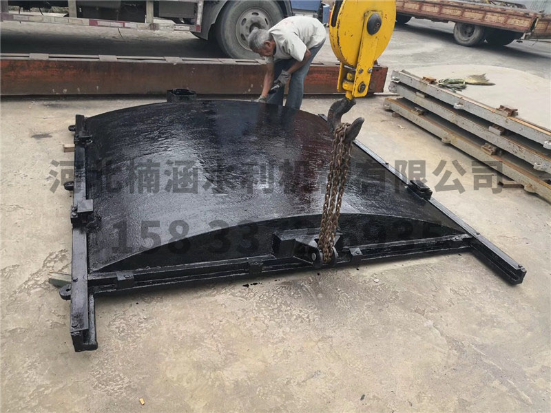 三、鑄鐵閘門安裝使用 鑄鐵閘門安裝是否正確,決定了閘門的止水效果,安裝時(shí)一定要認(rèn)真閱讀安裝說明書或按我公司現(xiàn)場(chǎng)指導(dǎo)安 裝人員的要求正確安裝。鑄鐵閘門的門槽與板面為整體安裝,二次澆注方式(亦可一次性整體安裝澆注)。出廠前閘 框與門體已調(diào)整好間隙,并用螺栓固定好,固定螺栓必須要等二次澆注完成并凝固后,方可去除,固定螺栓的位置 上面在門楣的迎水面一側(cè),下面在底檻的背水面一側(cè)。安裝時(shí)首先固定好啟閉機(jī),運(yùn)用啟閉機(jī)螺桿將閘門吊起,放 置閘槽中,調(diào)整閘門方向,使之與水流方向保持垂直,然后將閘門固定,我廠已在門框上打好調(diào)整固定孔,可用螺 栓進(jìn)行調(diào)整固定,免去傳統(tǒng)用木楔石塊固定的不便,固定好即可進(jìn)行二次澆注。鑄鐵閘門的板面與閘槽為偶合件配 套,在搬運(yùn)、倉(cāng)儲(chǔ)及安裝時(shí)不得互換,以免影響止水效果。閘門的迎水面一定要按設(shè)計(jì)要求安裝,否則會(huì)因板面受 力方向不對(duì),引起板面斷裂,遇反向受壓時(shí)一定要在訂貨時(shí)說明,防止發(fā)生重大事故。在訂貨時(shí)要提供孔口尺寸, 水頭,提升高度和結(jié)構(gòu)形式,閘板面一般為正向(迎水面)受壓,如需反向受壓,訂貨時(shí)需說明,止水一般是后止水 (背水面),需前止水時(shí),訂貨時(shí)應(yīng)說明,使用時(shí)必須按操作規(guī)程操作。經(jīng)常檢查閘門板與閘槽是否卡澀,及時(shí)將卡 澀物清除,保證位置置中,使設(shè)備正常運(yùn)行。本公司的鑄鐵閘是按照水利部SL36—2006和《水利水電工程鋼閘門 制造、安裝及驗(yàn)收的規(guī)范》GB/T14173—2008規(guī)范設(shè)計(jì)制造。