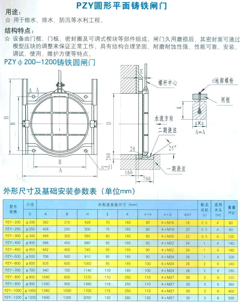 PZY圓形平面鑄鐵閘門